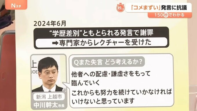上越市の中川市長には、2024年6月にも「工場で働いているのは高校卒業レベルの人で、頭のいい人だけが来るわけではない」という、“学歴差別”ともとられる発言がありました。
