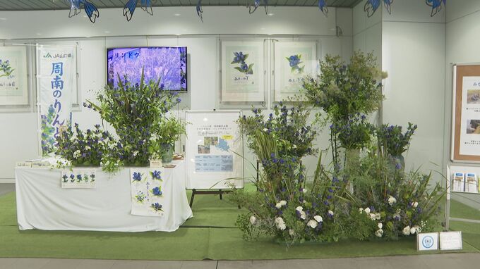 展示はJA山口県周南統括本部が、オリジナルリンドウをPRするとともに少しでも涼しさを感じてもらおうと、毎年行っています。