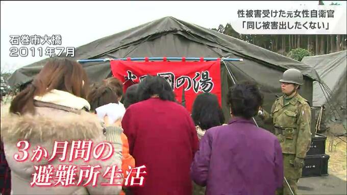 震災後、3か月間にわたり避難所での生活が続いた五ノ井さん。そこで出会ったのが支援に訪れていた自衛隊でした。