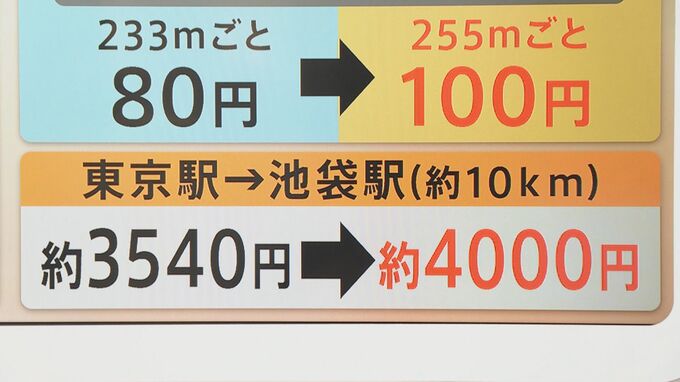 東京駅から池袋駅まで約10キロメートルの距離だとこれまでは約3540円だったのが約4000円になり、約500円高くなります。