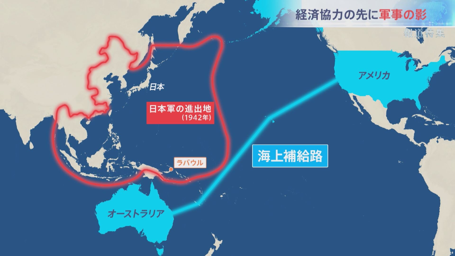 第二次世界大戦中、日本はここラバウルをはじめ太平洋の各地に勢力を広げた。アメリカとオーストラリアを結ぶ海上補給路を遮断することが狙いだった。かつて旧日本軍にとって戦略的要衝だった地域。そこはアメリカと対立を深める現代の中国にとっても、軍事的に重要な場所となりつつある。