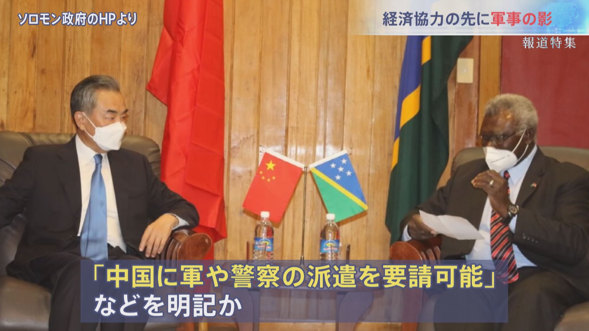 具体的内容は明らかにされていないが「ソロモン諸島が中国に軍や警察の派遣を要請できる」ことなどが盛り込まれていると言われている。軍事施設の建設につながるのではないかという憶測が広がった。