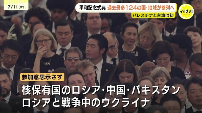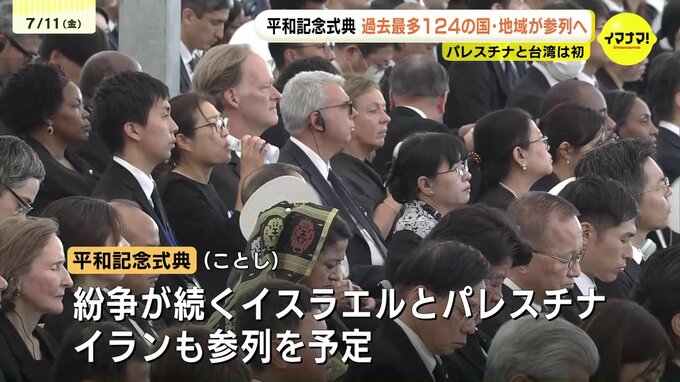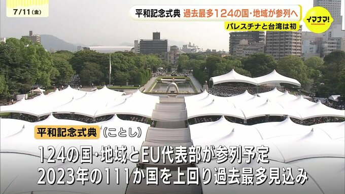 広島市によりますと、今年の平和記念式典では124の国と地域とEU代表部が参列を予定していて、一昨年の111か国を上回り、過去最多となる見込みです。