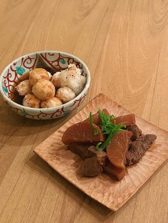 秋元さんは、「すね肉と大根の煮物」と「里芋の揚げだし」と手作り家庭料理の写真を投稿。