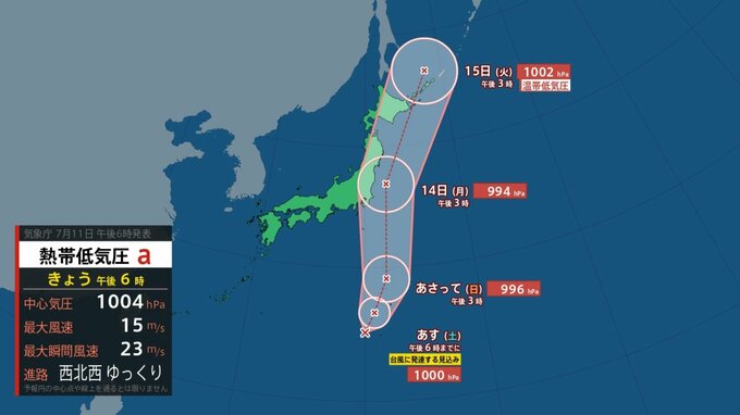 【台風情報】「熱帯低気圧a」の実況と予報(最新の進路予報あり)