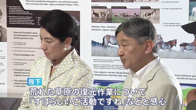 国賓としてモンゴルを公式訪問中の天皇皇后両陛下が国立公園を訪れ、最古の野生馬「タヒ」の生態や保全活動などについて説明を受けられました。両陛下は日本時間12日午後、首都ウランバートル近郊にある自然保護区…