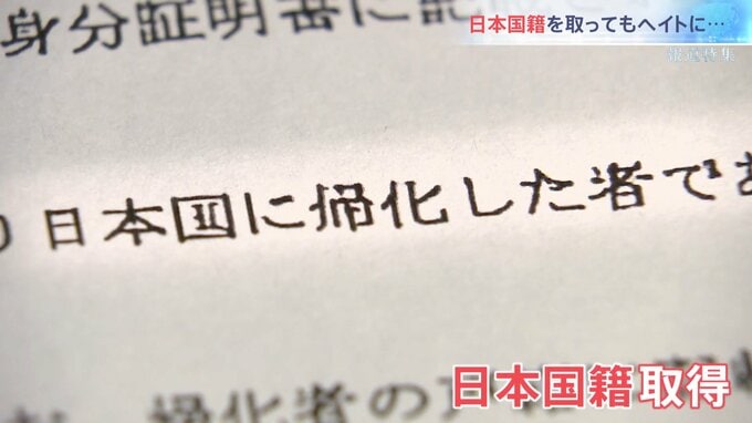 「日本国籍を取った時に『あなたには選挙権があります』『与えられました』と書かれてあった。それなのに帰化というジャンルで差別が行われている。国籍をとった人間に対しても、そういう風に排除を行っていく。全く何を考えてるかわからないくらい、めちゃくちゃな話だと思っています」