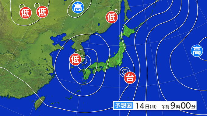 対馬海峡に低気圧が発生し西日本では大気の状態が非常に不安定に 四国の太平洋側では14日(月)にかけ雷をともなった大雨のおそれ 雨と風シミュレーション 北陸放送 2025年7月13日(日) 12:48 国内 週明けに対馬海峡付近に発生する低気圧などの影響で、中国・四国では大雨のおそれがあります。土砂災害などに注意をしてください。 14日(月)午前9時の予想天気図です。対馬海峡付近に低気圧が発生し日本海の西部に北上する見込みです。 14日(月)午前9時の予想天気図 低気圧に向かって暖かく湿った空気が流れ込み、13日から14日にかけては西日本で大気の状態が非常に不安定になるでしょう。