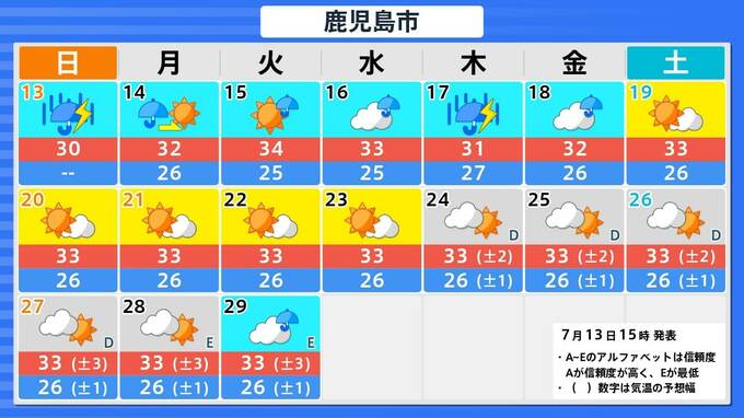 【大雨情報】関東に台風5号接近 九州は熱帯低気圧通過 近畿・東海は大雨のおそれ【雨と風のシミュレーション13日(日)~16日(水)】大雨情報 気象庁発表 南日本放送 2025年7月13日(日) 20:30 国内 天気 全国16日間予報 札幌市・釧路市・青森市・仙台市・東京・新潟市・金沢市・名古屋市・大阪市・広島市・松江市・高知市・福岡市・鹿児島市・那覇市の16日間予報を画像で掲載しています。今週は雨の予報が多くなっています。