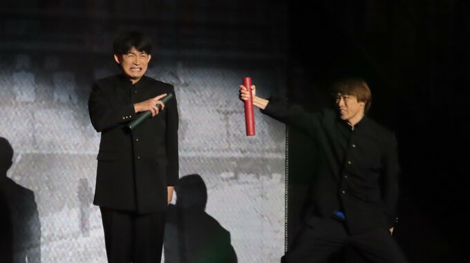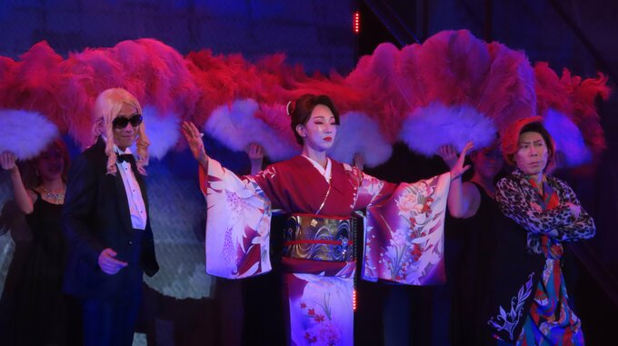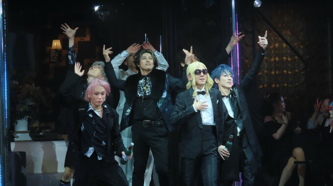 本作で、「ふぉ~ゆ~」と「梅棒」が演じるのはホスト。「歌舞伎町の女王」を演じる紅ゆずるさんは‟稽古場でも無駄に流し目を見ることが多くて、メイクもそれぞれこだわりがおありで、それぞれの役に徹するというところでは歌舞伎町に行っても結構いい順番が取れるんじゃなかな?”と太鼓判。