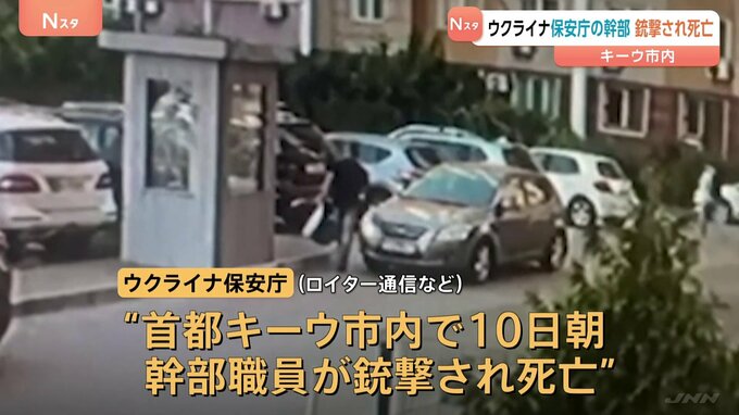 駐車場に向かって歩く男性に男が歩み寄り、銃を向ける様子がうつっています。ロイター通信などによりますと、ウクライナ保安庁は、首都キーウ市内で10日朝、幹部職員が銃撃され死亡したと発表。この職員についてア…