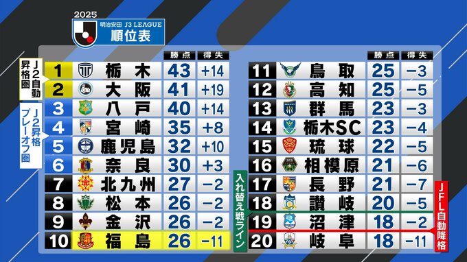サッカー明治安田J3で、13位の福島ユナイテッドFCは、12日、アウェイで15位のSC相模原と対戦しました。