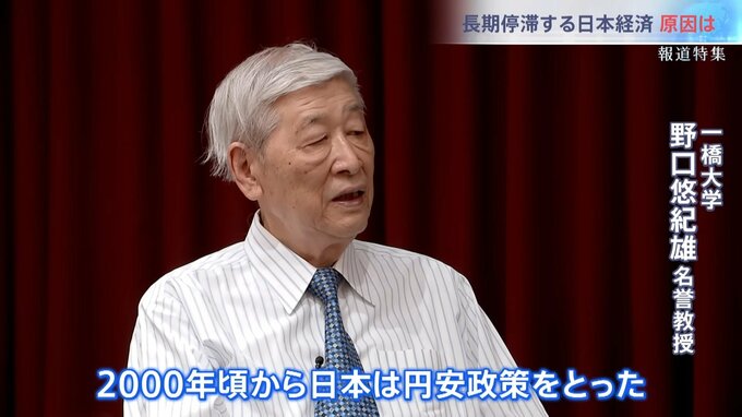 一橋大学の野口悠紀雄 名誉教授は、政府が長年進めてきた“円安政策”が、日本を衰退させてきた根本的な原因だと指摘する。