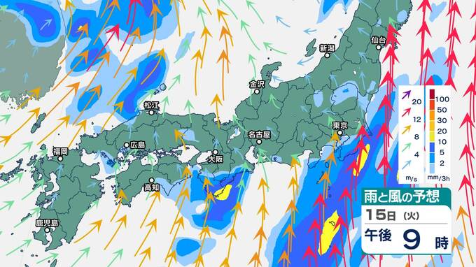 【大雨情報】近畿地方では局地的に雷を伴った『非常に激しい雨』が降る見込み 15日明け方にかけて『警報級の大雨』となる可能性【雨と風のシミュレーション】 チューリップテレビ 2025年7月14日(月) 00:00 15日(火)雨と風のシミュレーション