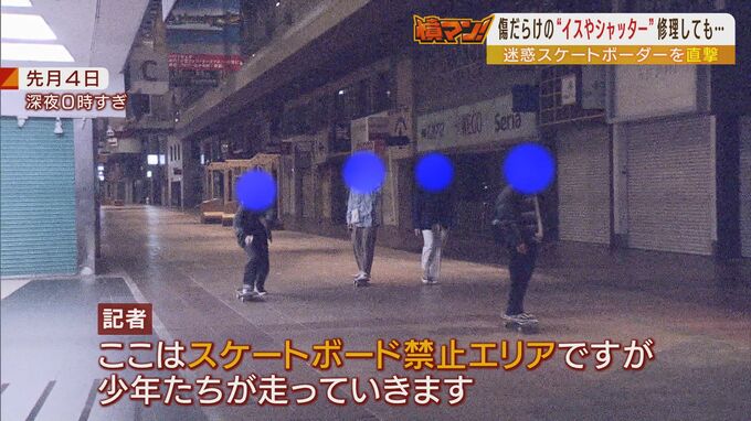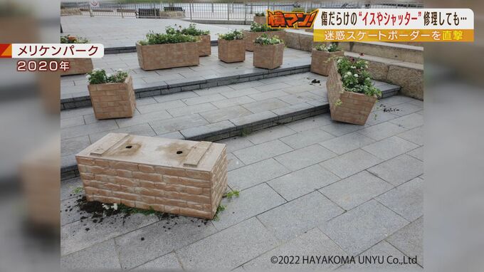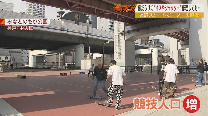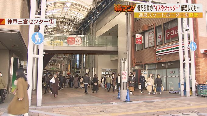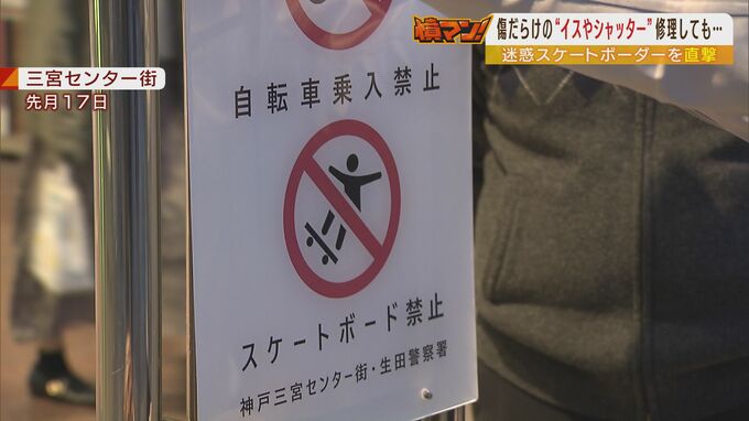 迷惑スケートボーダーを巡っては、人気の高まりとは裏腹に被害相談も急増していて、三宮センター街の破損については警察が器物損壊容疑で捜査を進めています。