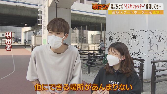 「(Qここで滑る理由は?)広くてつるつるなのと、他にできる場所があんまりないからです。(Qセンター街での迷惑行為は?)そういう人は、それがかっこいいと思ってる人もいる。でも、迷惑かけちゃうんやったらこっちでやった方がいいかなと思います」