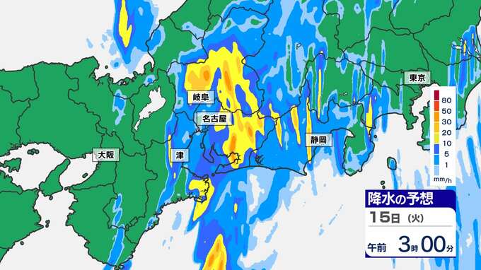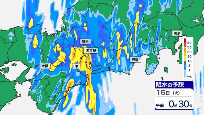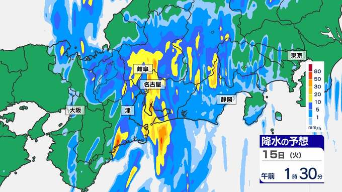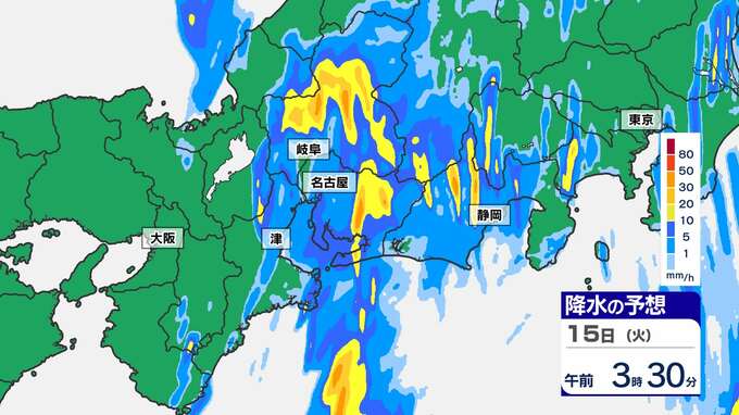 東海地方に【線状降水帯 予測情報】今夜からあす昼前にかけて 大雨災害発生のおそれ【30分ごとの雨シミュレーション】線状降水帯が予測された理由 愛知・岐阜・三重・静岡