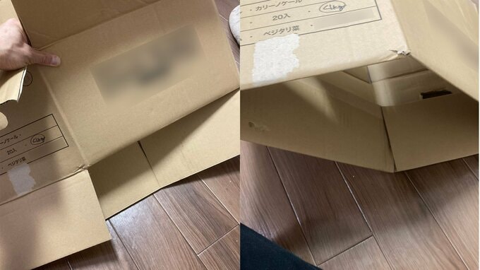 続けて、「下をたたみ込んで、内側にできたポケットにダンボールを差し込むと持ち運びが楽ですよー!」と紹介しました。