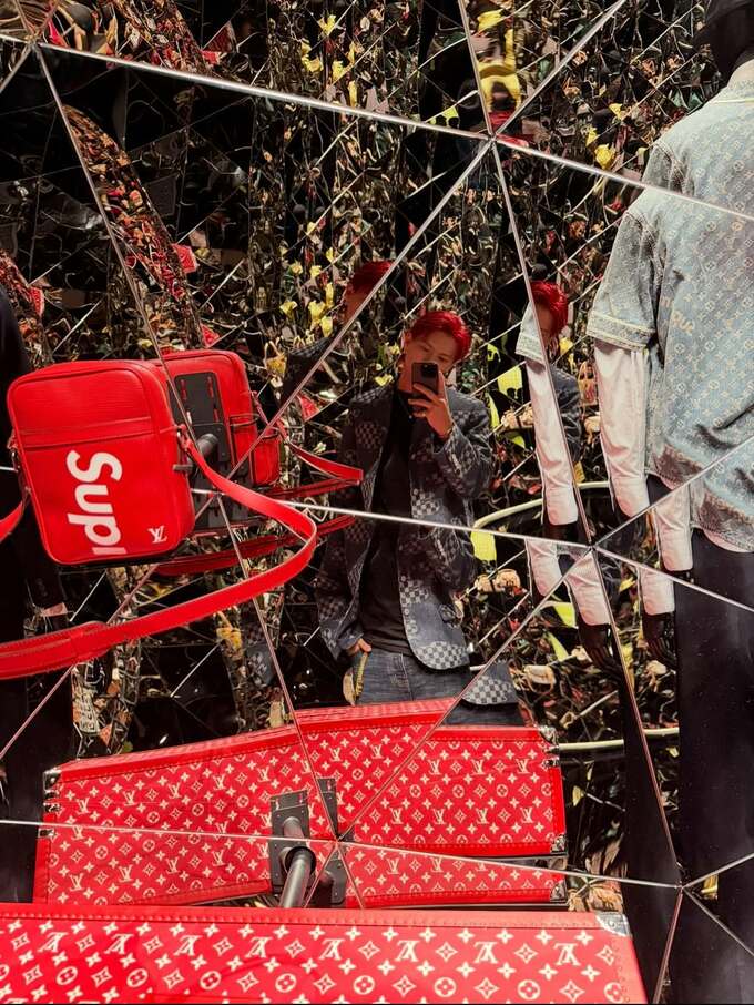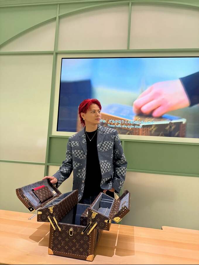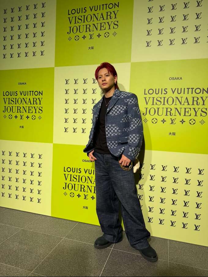 投稿された写真の平野さんは、デニムとジャケットを組み合わせたカジュアルながらも洗練されたスタイル。特に印象的なのは鮮やかな赤色の髪で、個性的でありながらもルイ・ヴィトンの世界観に溶け込む存在感を放っています。