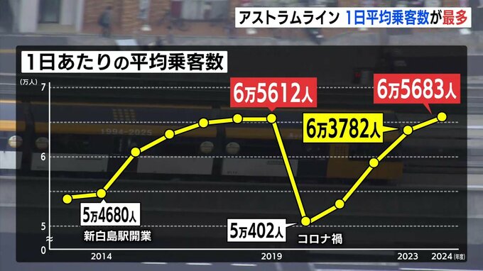 アストラムラインの1日当たりの平均乗客数は、「新白島駅」が開業したことで、2019年度には6万5612人と、開業以来、過去最多となっていました。