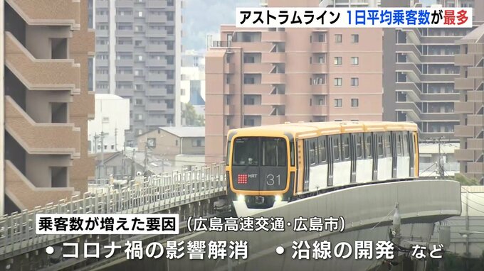 広島市を走るアストラムラインの1日当たりの平均乗客数が昨年度、6万5000人を超え、過去最多となりました。