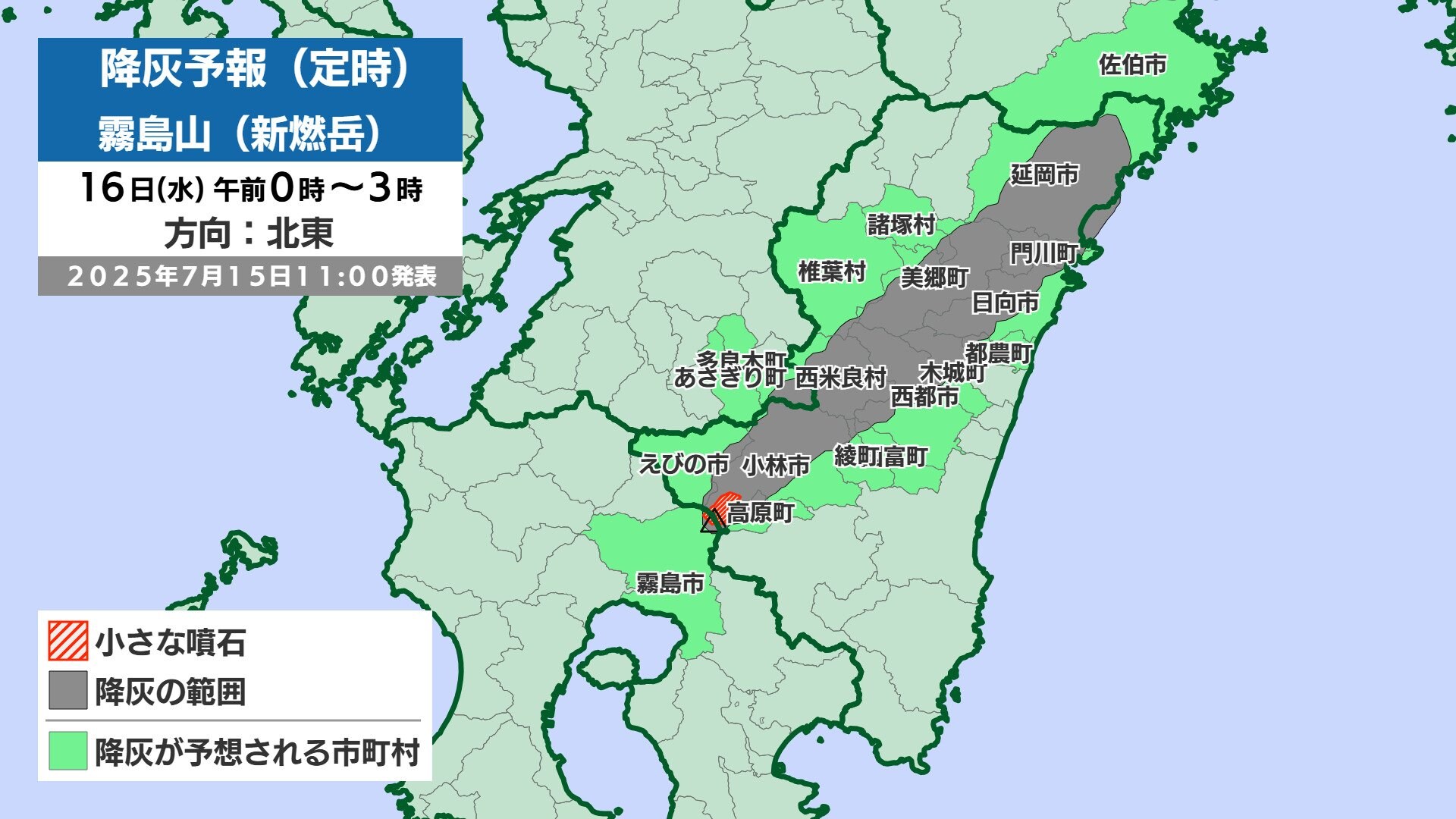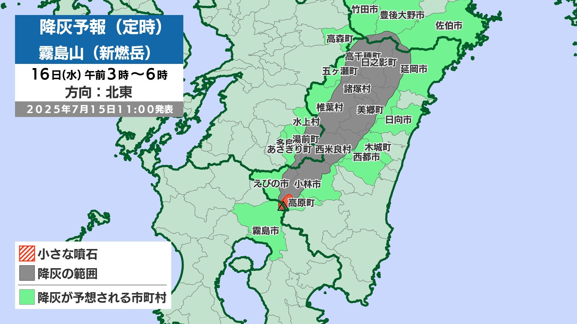 15日正午~16日午前6時までに降灰が予想される市町村は、以下の通りです。