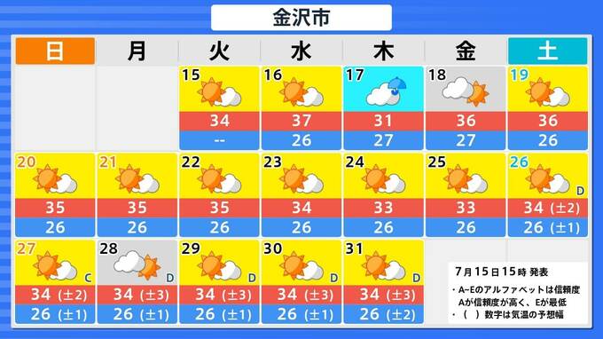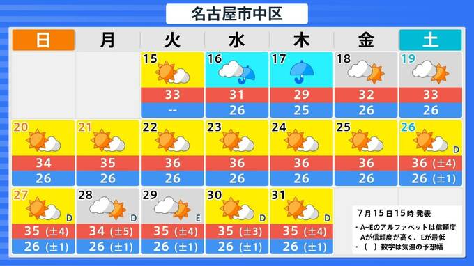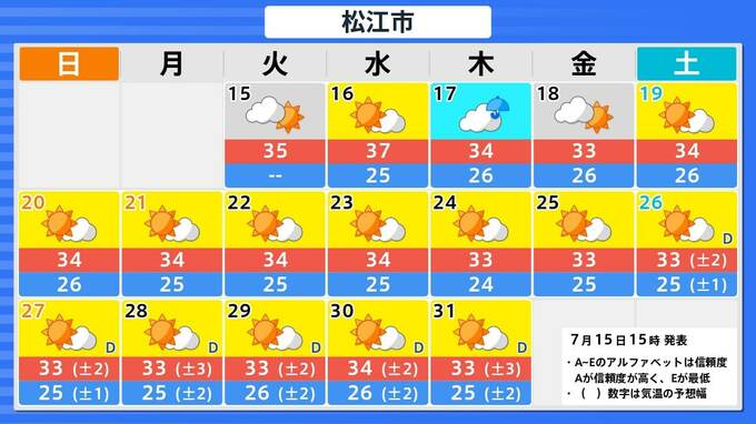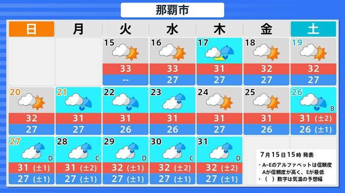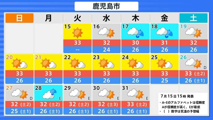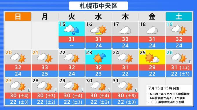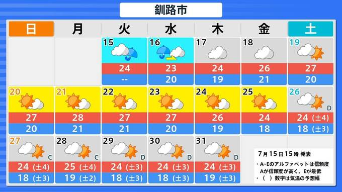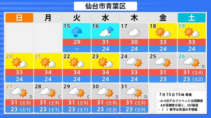 札幌市・釧路市・青森市・仙台市・東京・新潟市・金沢市・名古屋市・大阪市・広島市・松江市・高知市・福岡市・鹿児島市・那覇市の16日間予報を画像で掲載しています。今回の雨のあと、東京・仙台・青森では、太平洋高気圧覆われて晴れが続くため、関東甲信地方も東北地方も、ようやく梅雨明けとなりそうです。