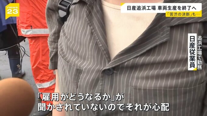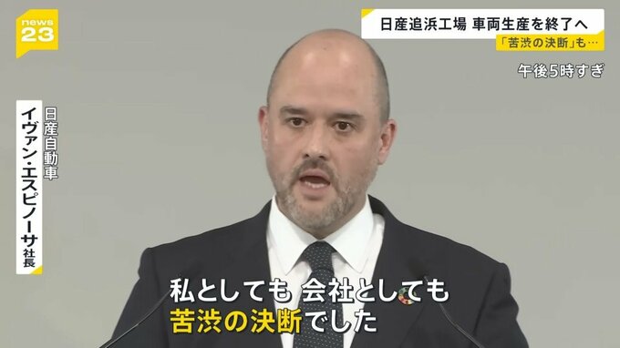 経営の立て直しを迫られている日産自動車。その主力工場、横須賀の「追浜工場」での車両生産を終了すると発表しました。社長は「苦渋の決断」としていますが、従業員や地元に不安が広がっています。