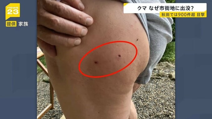 噛まれた臀部には、クマの牙の跡とみられる傷が残っています。この時期に市街地での出没が増えている理由について、専門家は...