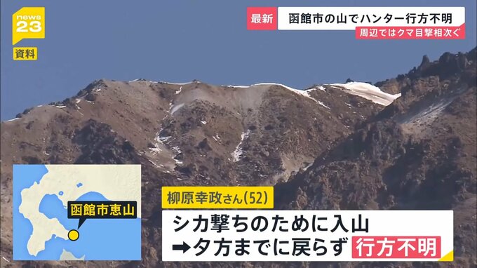 また、北海道函館市にある山で、15日シカ撃ちのために入山したハンターの柳原幸政さん(52)が夕方までに戻らず、行方不明になっているということです。警察と消防が捜索をおこなったところ、山中に柳原さんのものとみられる車がみつかり、そばに猟銃が落ちていたということです。