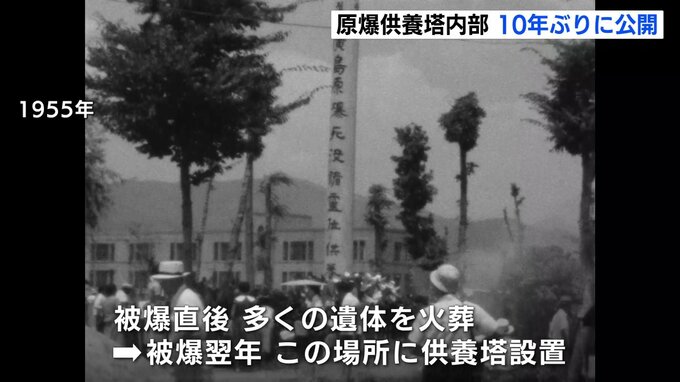 広島市の平和公園にある原爆供養塔の内部が10年ぶりに報道陣に公開されました。