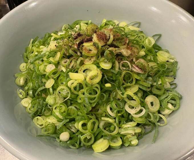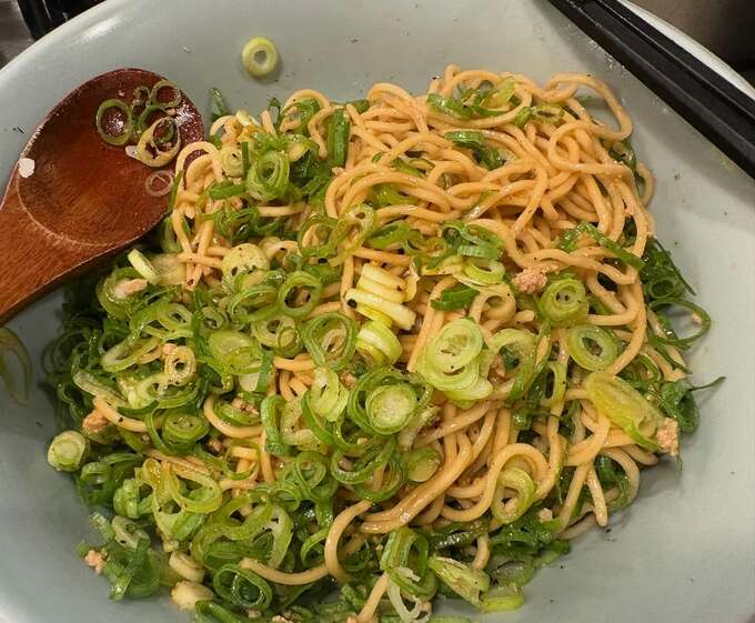 昂生さんは「〆!!」とテキストして、ハッシュタグを怒濤のごとく追加。「#広島に来たら」「#これを食べずには帰れない!」「#汁なし担々麺!」と、輪切りのネギが、下にあるはずの麺が見えなくなるほどにぎっしり盛られた丼の写真を投稿。