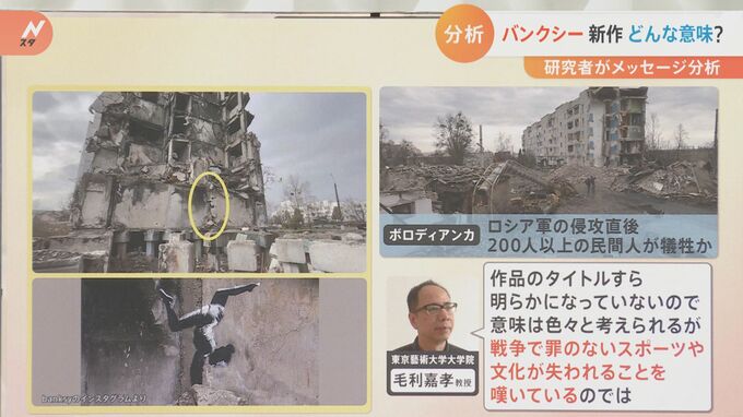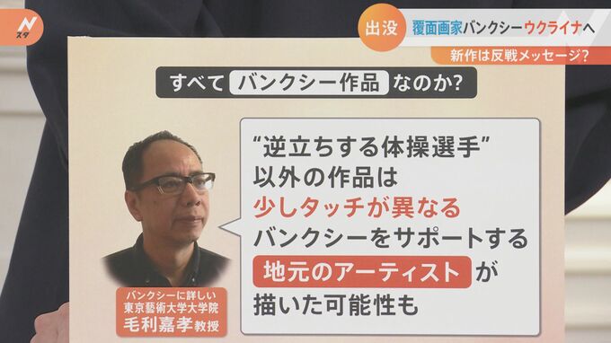 こうした作品がウクライナで見つかっているわけですが、全てバンクシーの作品なんでしょうか?バンクシーに関する著書なども書いている東京藝術大学大学院の毛利教授に伺いました。