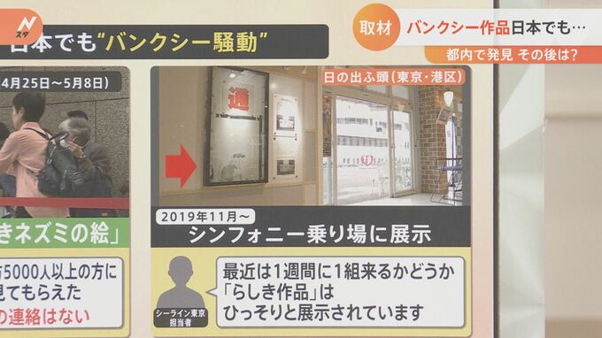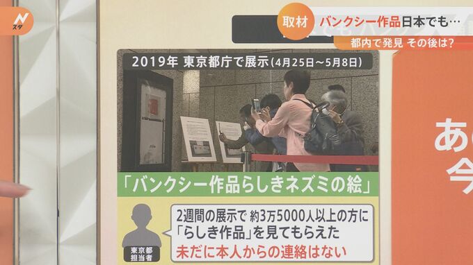 東京都の担当者によると「2週間の展示で約3万5000人以上の方が“らしき”作品を見た。未だに本人からの連絡はない」ということで、バンクシー作品かどうかは謎に包まれたままです。