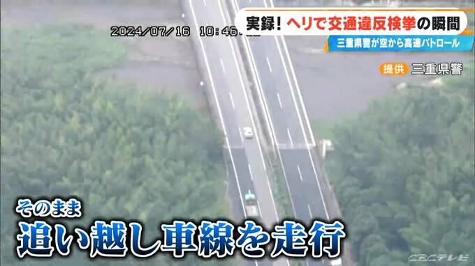 県警のヘリが捉えたのは、伊勢自動車道の久居インターチェンジ付近を走る…白い高級外車。勢いよく追い越し車線を突き進み、車を追い抜いていく様子がはっきりと映し出されます。