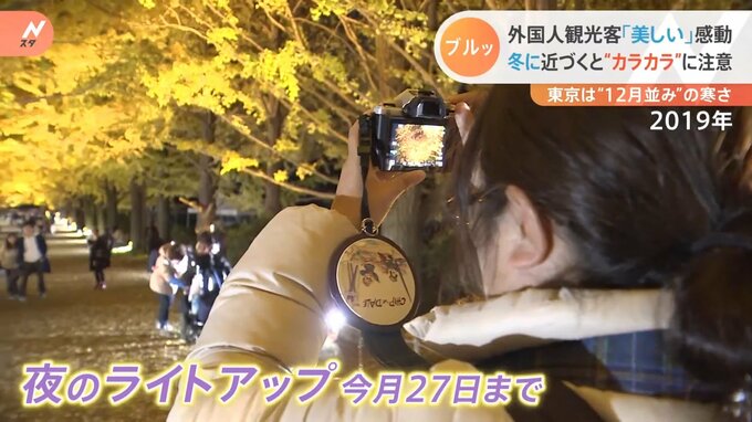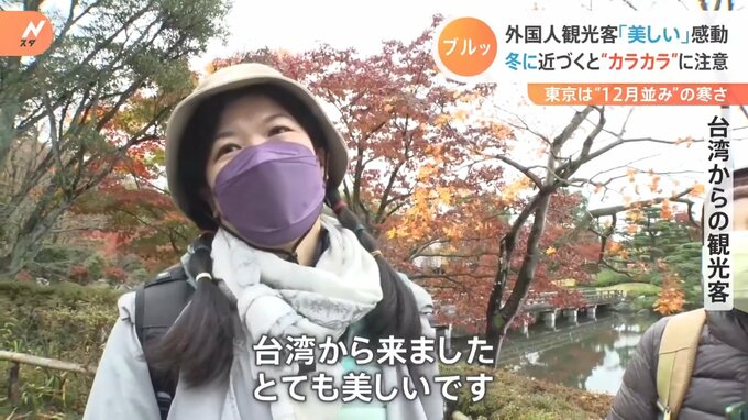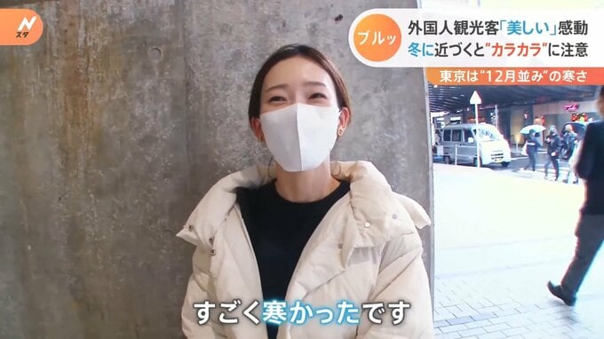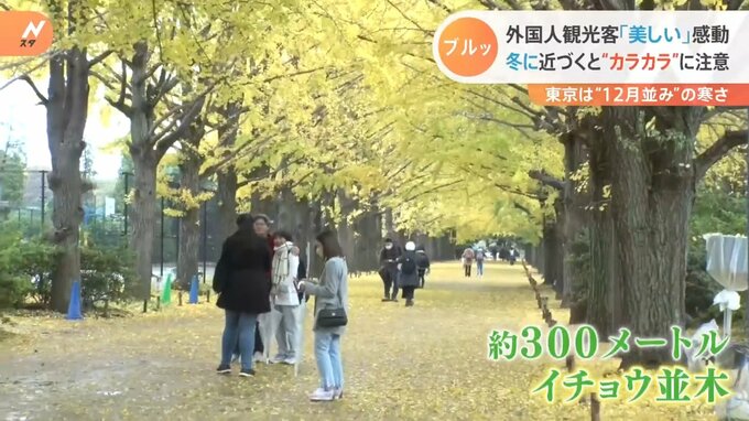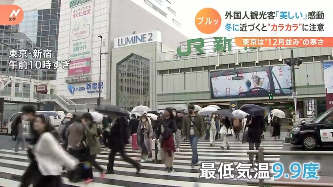 11月15日の朝は9.9度まで冷え込んだ東京。日中の気温も13度までしか上がらず、師走並みの寒さとなりました。
