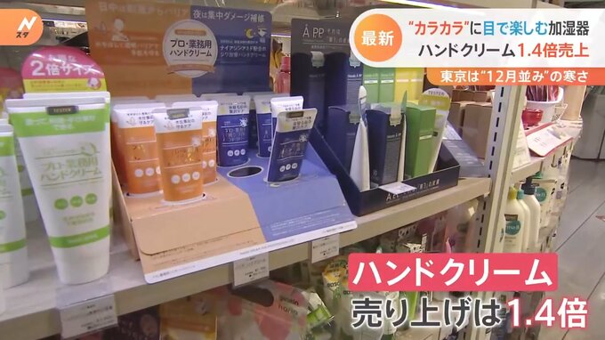 さらに、乾燥対策で欠かせないハンドクリームの売り上げは去年の1.4倍に増加。