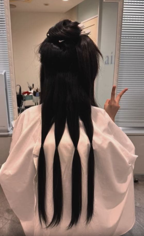 ヘアドネーションのためには一定の長さまで髪を伸ばす必要があります。神田さんにとっても「ここまで超ロングにしたのはもちろん人生初めての事でしたが娘と2人で伸ばしてきた髪の毛をいよいよカットして参りました」と記しています。
