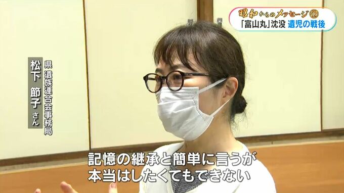 多くの遺児を生み出した富山丸の沈没。戦後も残された家族を苦しめ続けた戦争の記憶をどうつないでいくかが課題です。