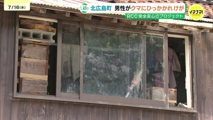 北広島町によりますと、15日午前7時ごろ北広島町小原で男性が、軒下にいた小型のツキノワグマにひっかかれたということです。男性は左足の太ももやふくらはぎに軽いけがをしました。男性は、隣の空き家にある養蜂用の巣箱を確認するため、1人で歩いていたということです。
