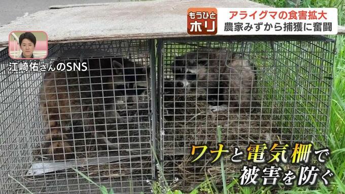捕獲したアライグマたちワナと電気柵を併用して、ここ数年は被害をなんとか防いでいるといいます。