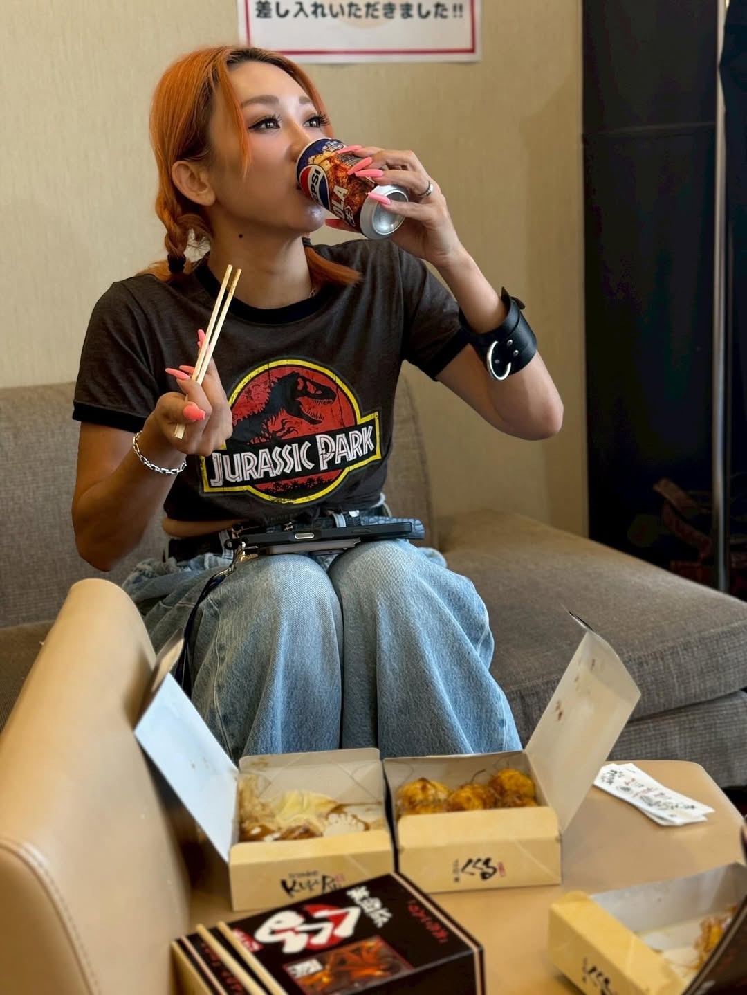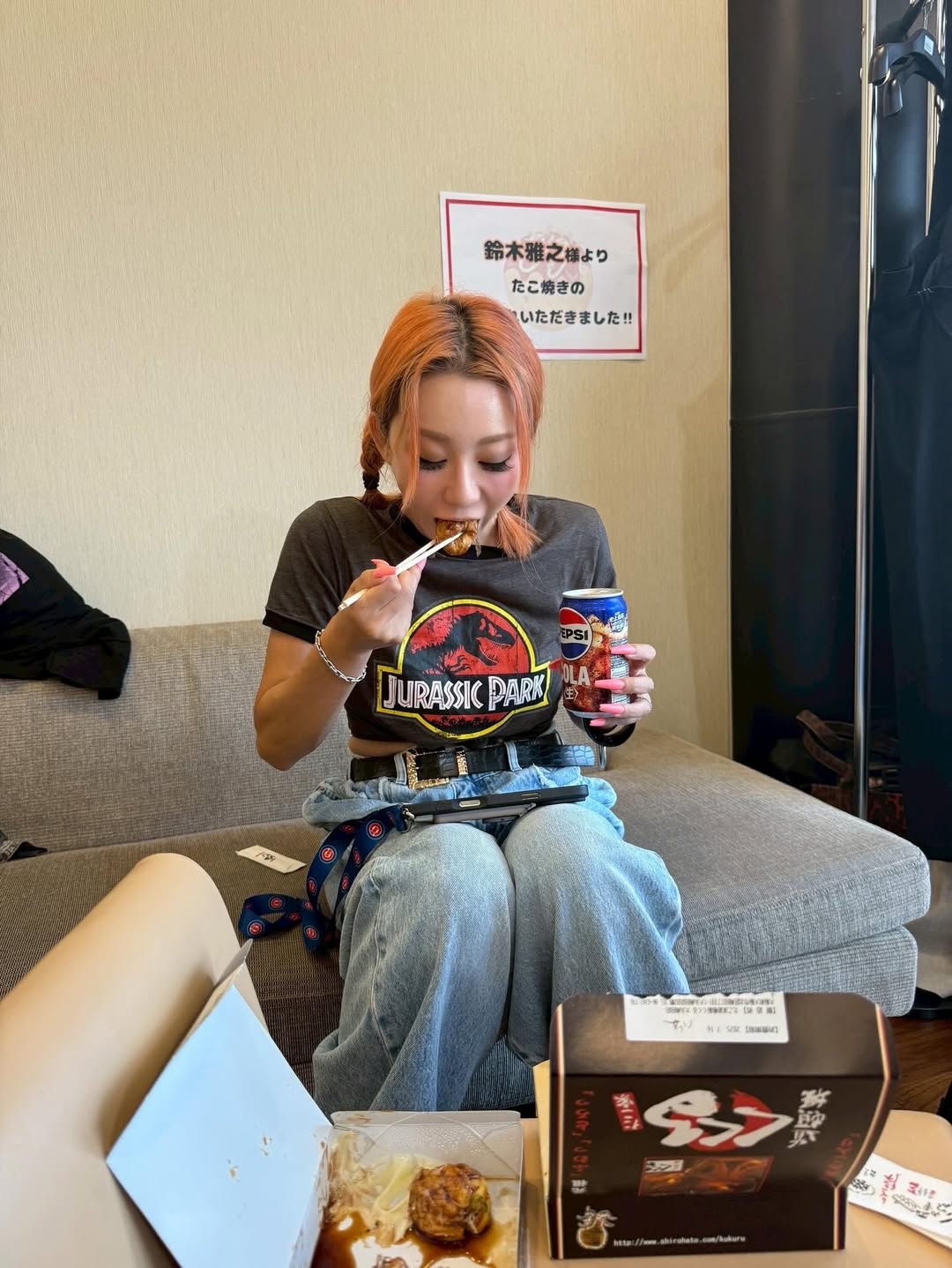 そして「楽屋へ到着次第、マーチンからの差し入れの くくるのたこ焼き!!! 俄然やる気!!」と、「たこ焼き」を楽しむ画像を投稿しました。