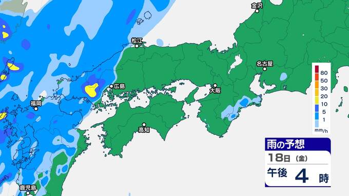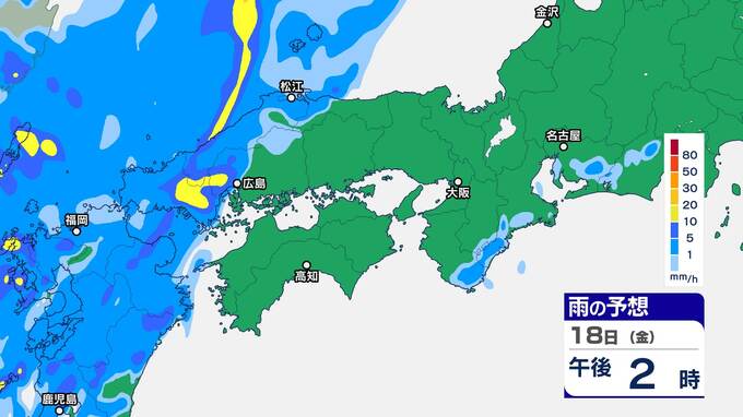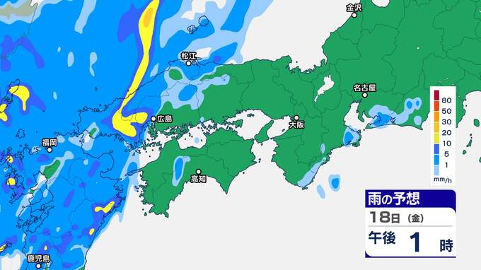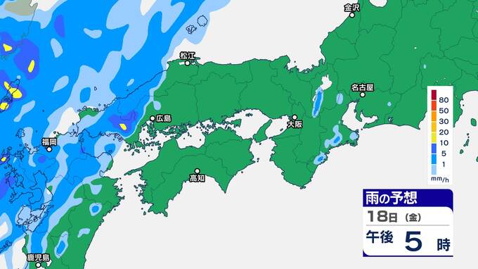 【大雨情報】近畿は17日夕方にかけて低い土地の浸水や土砂災害に警戒を 18日明け方にかけて局地的に雷を伴った『非常に激しい雨』が降る所がある見込み【雨のシミュレーション1時間毎】 チューリップテレビ 2025年7月17日(木) 11:31 国内 天気 18日(金)正午~午後5時 雨のシミュレーション