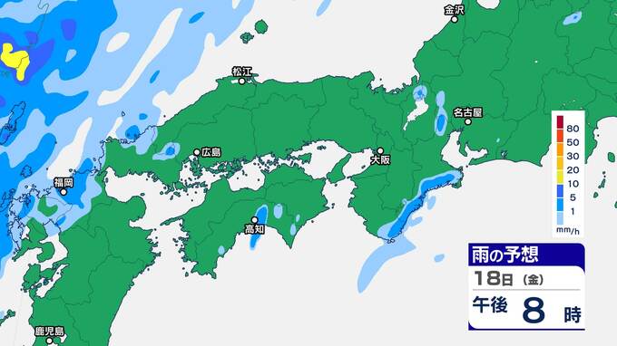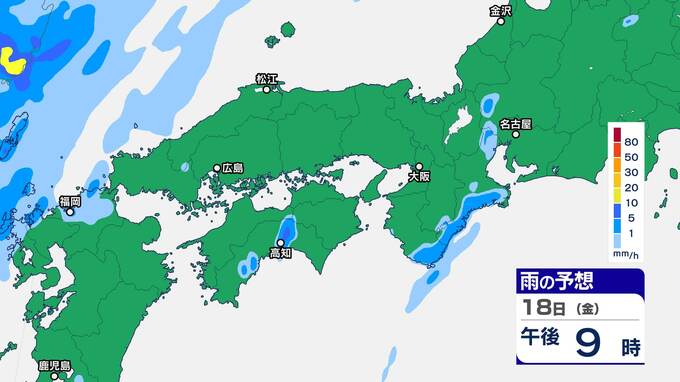 【大雨情報】近畿は17日夕方にかけて低い土地の浸水や土砂災害に警戒を 18日明け方にかけて局地的に雷を伴った『非常に激しい雨』が降る所がある見込み【雨のシミュレーション1時間毎】 チューリップテレビ 2025年7月17日(木) 11:31 国内 天気 18日(金)午後6時~午後9時 雨のシミュレーション
