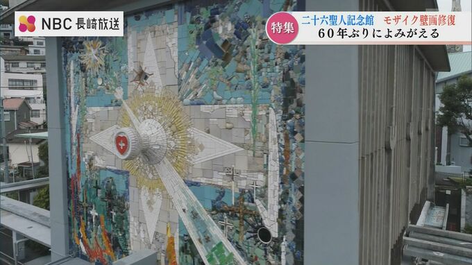 日本二十六聖人殉教の地、長崎市 西坂の丘に60年前に建てられた記念館の壁画が先月、半年間の修復作業を終えました。ガラスやタイルを組み合わせて作る『モザイク壁画』は“日本のガウディ”と呼ばれる建築家の名…