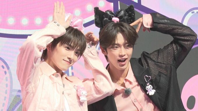 17日、JO1の川西拓実さん、河野純喜さんが 「MY MELODY ♡ KUROMI GAME PLAZA」プレス発表会に登壇しました。