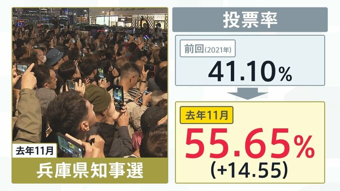 こうした中で、投票率がぐっと上がったのが、2024年11月の兵庫県知事選です。