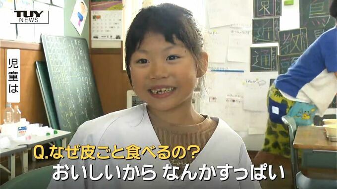 児童「(Qなんで皮ごとたべるの?)おいしいからです。なんか酸っぱい感じ」