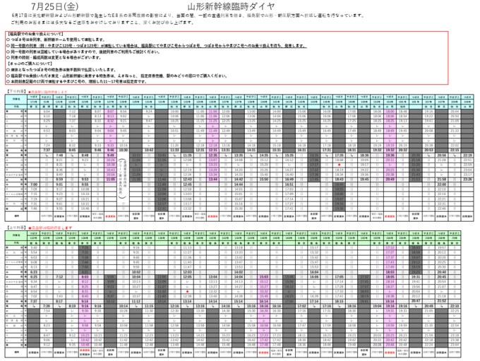 山形新幹線 7月22日(火)~31日(木)の運転計画を発表 しかし現在も不具合の原因究明・復旧のめど立たず JR東日本発表 テレビユー山形 2025年7月18日(金) 06:54 国内 ■24日 ■25日