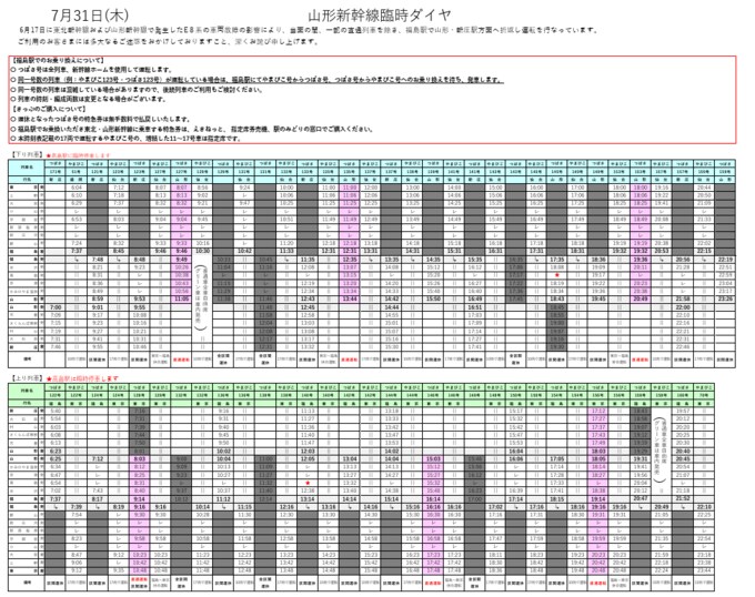 山形新幹線 7月22日(火)~31日(木)の運転計画を発表 しかし現在も不具合の原因究明・復旧のめど立たず JR東日本発表 テレビユー山形 2025年7月18日(金) 06:54 国内 ■30日 ■31日